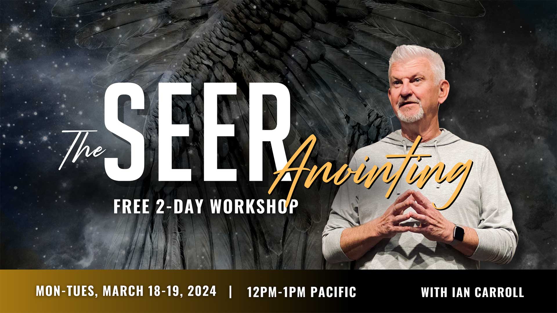 Dear Wanda, Seeing the unseen... Nothing comes fully formed. Even Jesus did not come fully formed. He was a baby and as a young adult He needed to grow in wisdom and stature. We are no different and the gifts and anointings God gives us are no different. You have been given the ability to experience all of creation, the seen and the unseen parts. Ian Carroll wants to teach you how. The ability was probably very present when you were a baby but was taught out of you by well meaning adults. It can be taught back in. Join Ian Carroll on March 18-19 at 3 pm Eastern for The Seer Anointing workshop and sharpen your ability to unlock your God-given vision and start moving in authority. What the two days will look like: Day 1: Monday, March 18 - Understanding The Seer Anointing: What is the Seer Anointing is, its biblical foundation, and how it differs from the prophetic gift.